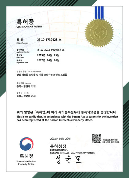 다양한 분석 연구를 통해 기능성 및 안정성이 입중된 독자적/독보적 원료이다.